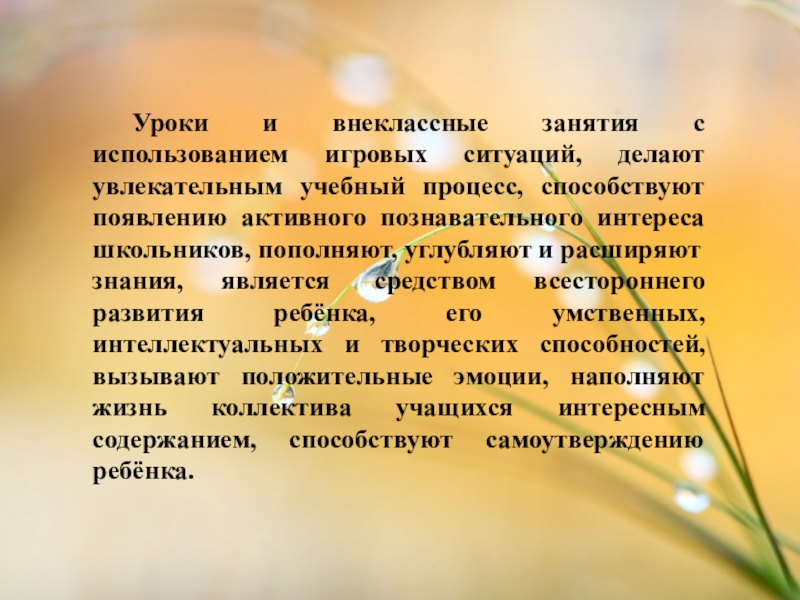 Слайд 33 Уроки и внеклассные занятия с использованием игровых ситуаций, делают увлекательным учебный
