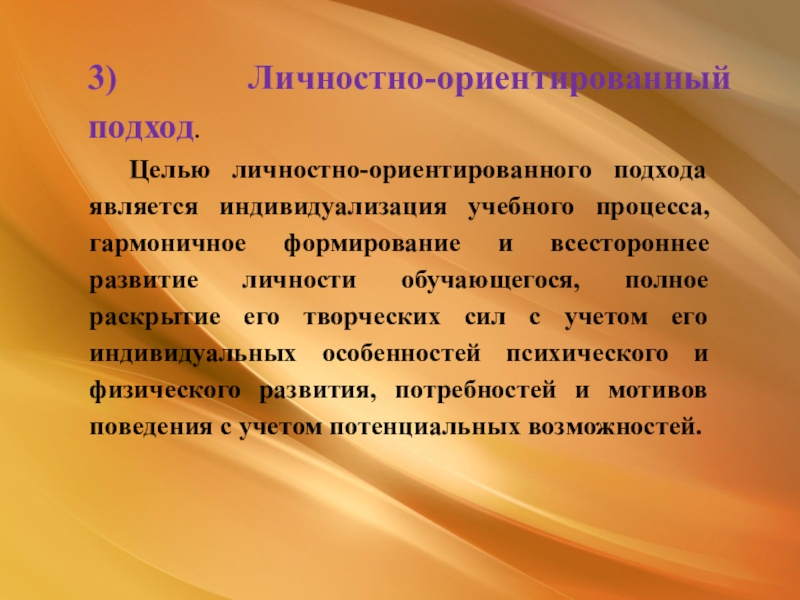 Целью личностно-ориентированного подхода является индивидуализация учебного процесса, гармоничное формирование