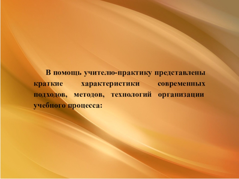 Слайд 5В помощь учителю-практику представлены краткие характеристики современных подходов, методов, технологий организации