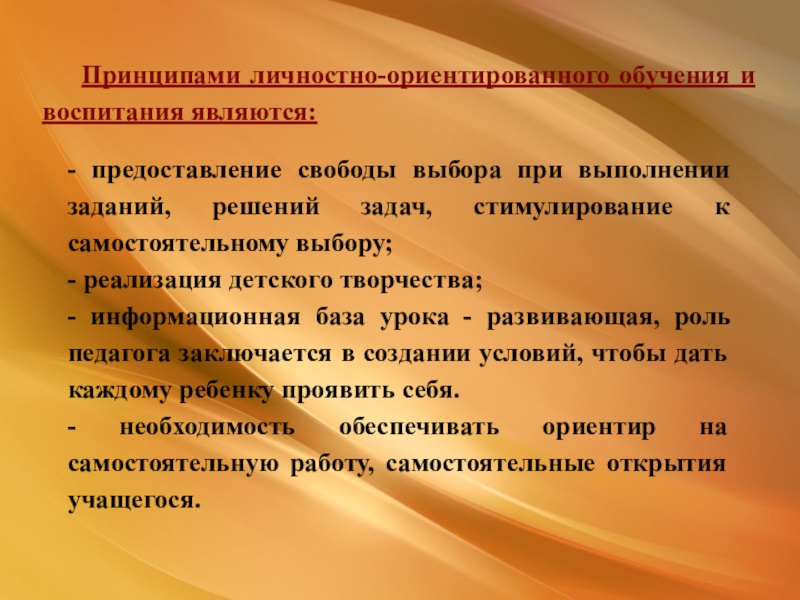 Слайд 14Принципами личностно-ориентированного обучения и воспитания являются: