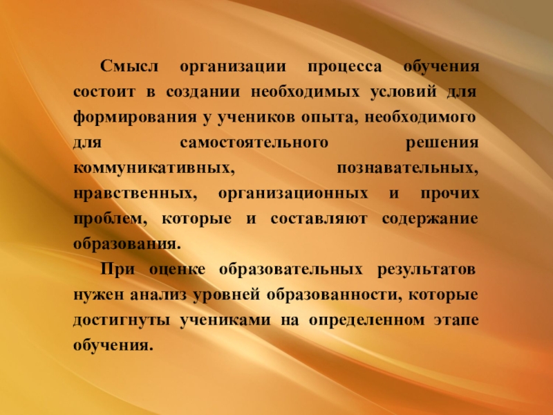 Слайд 24Смысл организации процесса обучения состоит в создании необходимых условий для формирования