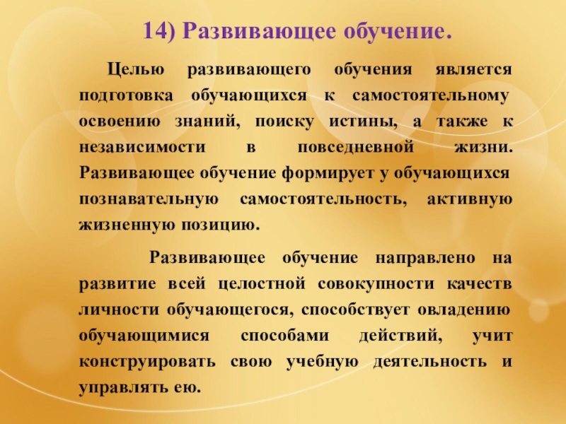 Целью развивающего обучения является подготовка обучающихся к самостоятельному освоению