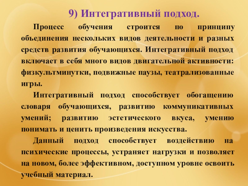3) Принцип целостности основывается на представлении о целостной жизнедеятельности ребенка.