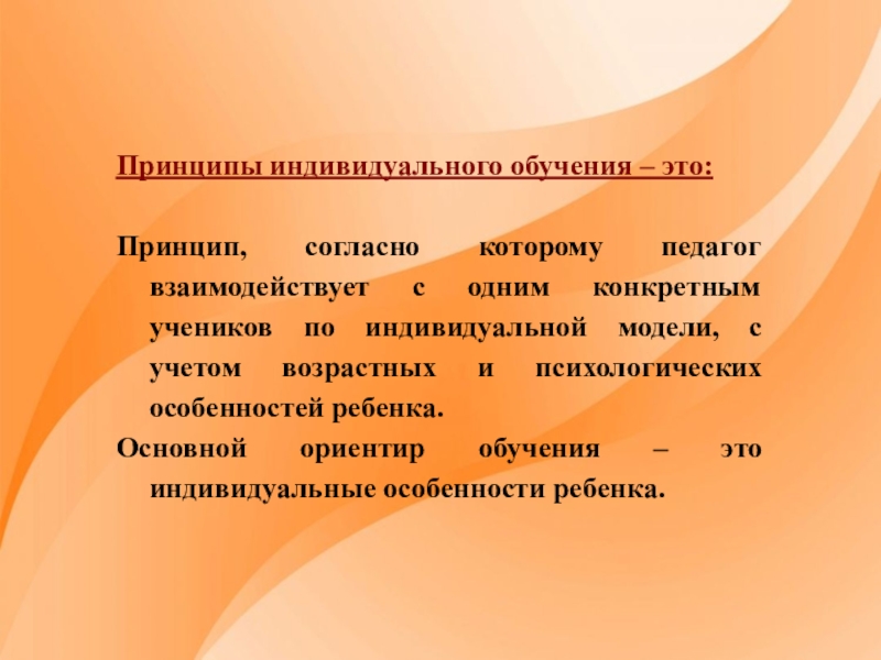 Индивидуальное обучение способствует индивидуализации процесса обучения и воспитания, учету