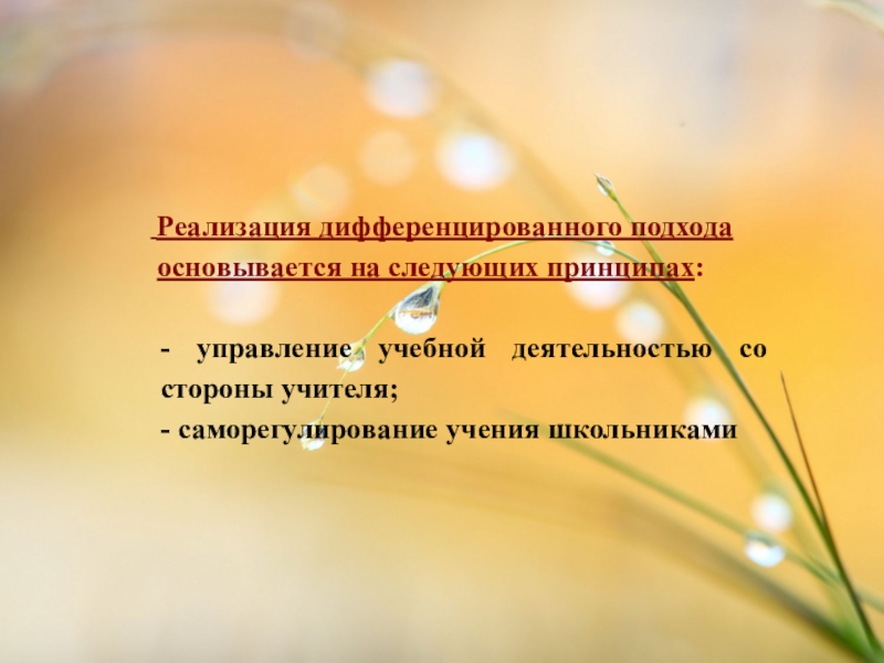 Слайд 21 Реализация дифференцированного подхода основывается на следующих принципах: