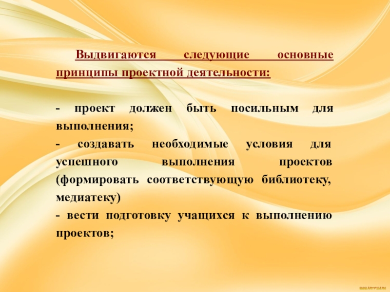 Слайд 37Выдвигаются следующие основные принципы проектной деятельности: