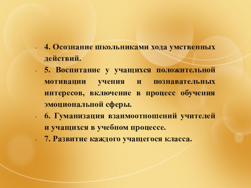 6. Гуманизация взаимоотношений учителей и учащихся в учебном процессе.