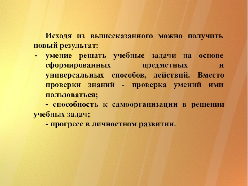 у учеников опыта, необходимого для самостоятельного решения коммуникативных, познавательных, нравственных, организационных и прочих проблем, которые и составляют содержание образования.