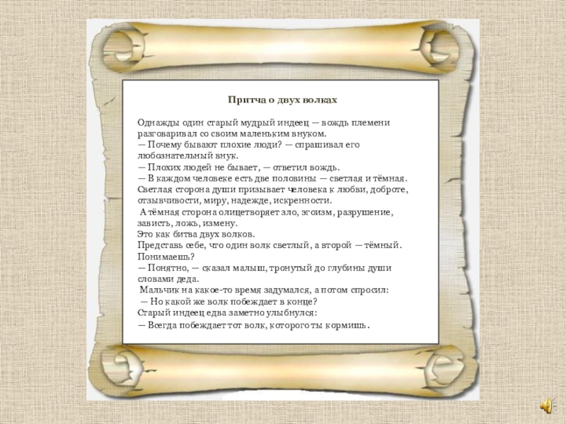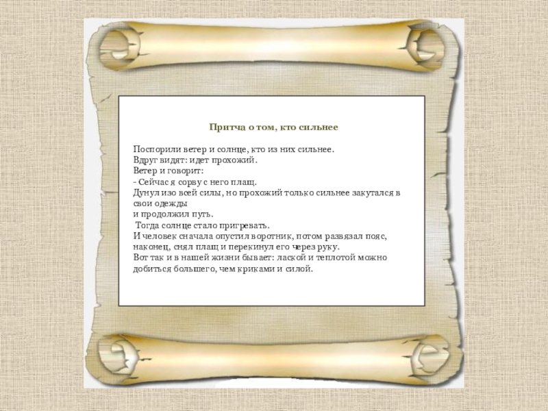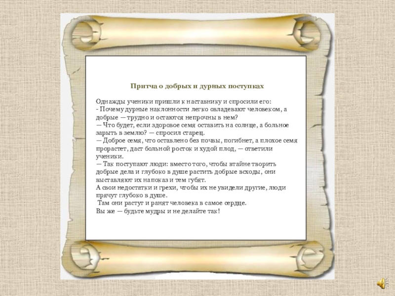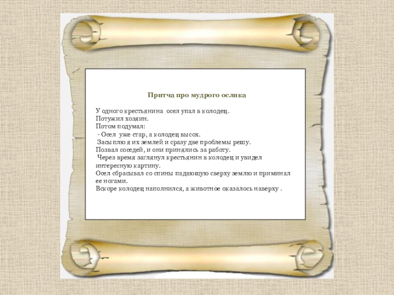 Слайд 8Притча о том, чтобы помнить добро и забывать зло