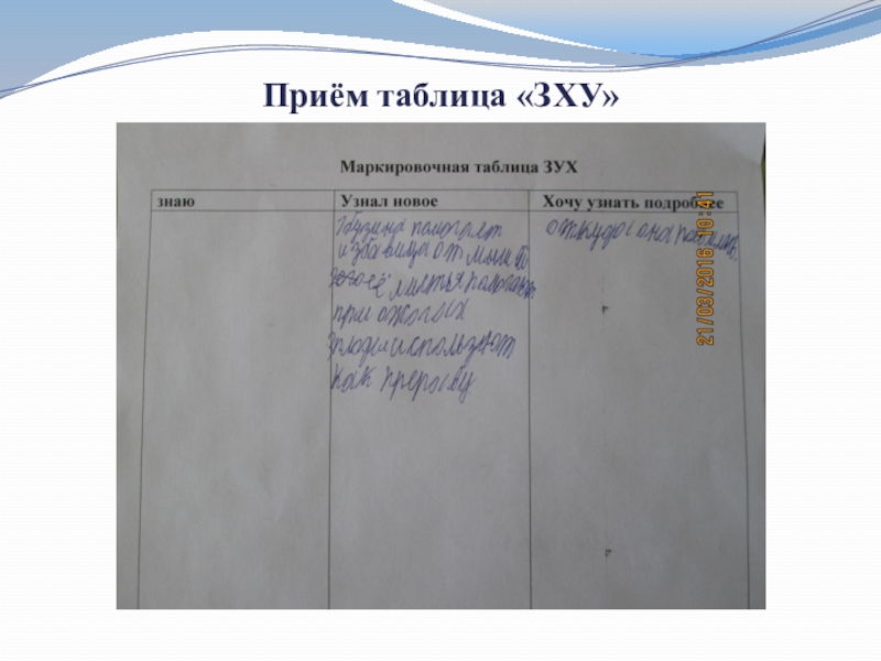 Слайд 22 Приём таблица «ЗХУ»