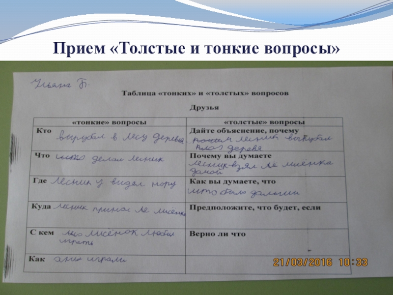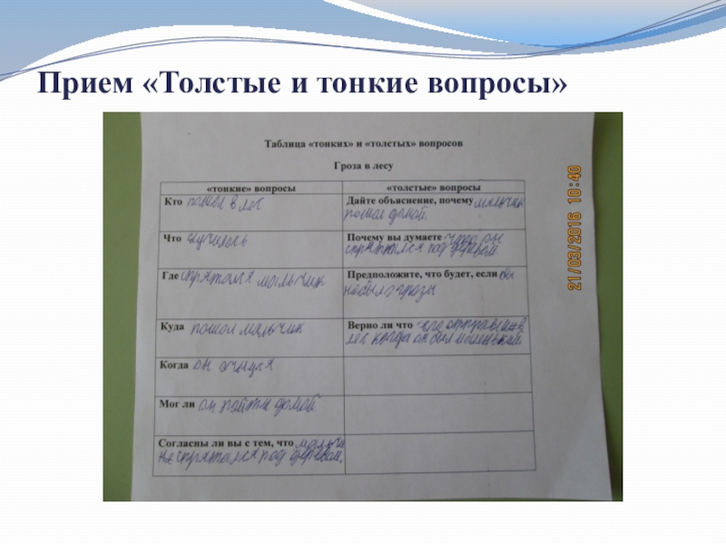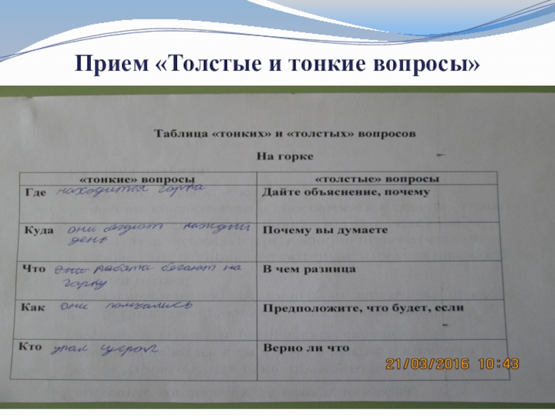 Слайд 11Прием «Толстые и тонкие вопросы»