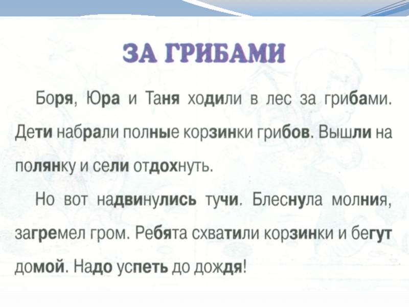 по содержанию, справляются с заданиями на содержание прочитанного, но задания, требующие от обучающихся самостоятельного оформления речевого высказывания, формулирования своих мыслей (например, в виде самостоятельного составления вопросов к тексту) вызывают затруднения.