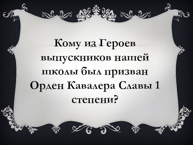 Слайд 13Кому из Героев выпускников нашей школы был призван Орден Кавалера Славы