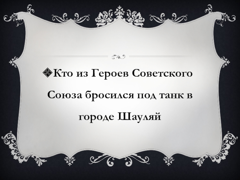Слайд 3Кто из Героев Советского Союза бросился под танк в городе Шауляй