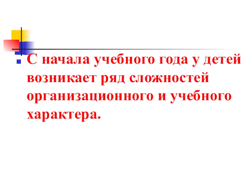 Слайд 3С начала учебного года у детей возникает ряд сложностей организационного и
