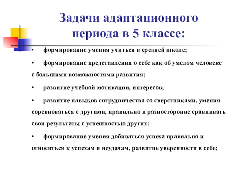 Слайд 11Задачи адаптационного периода в 5 классе: