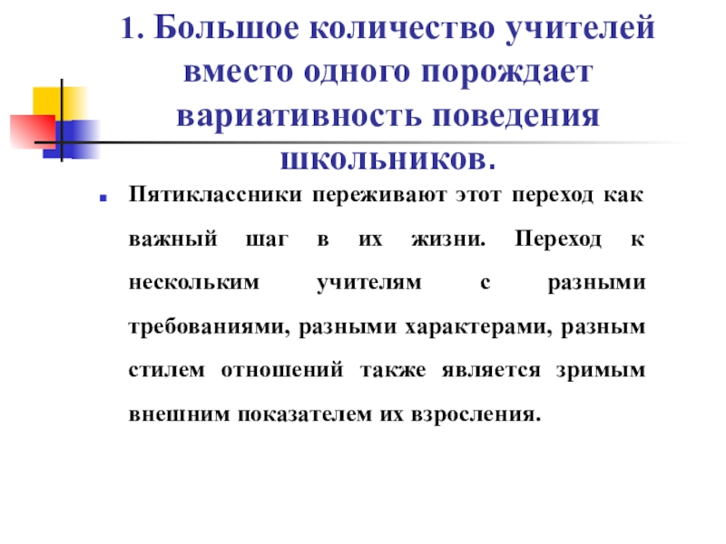 Слайд 41. Большое количество учителей вместо одного порождает вариативность поведения школьников.