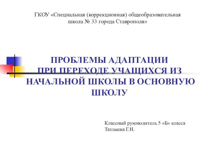 (коррекционная) общеобразовательная школа № 33 города Ставрополя»