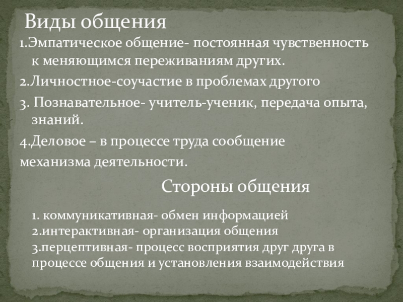 3.перцептивная- процесс восприятия друг друга в процессе общения и установления взаимодействия