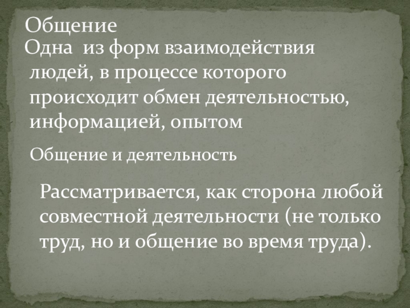 Рассматривается, как сторона любой совместной деятельности (не только труд, но и общение во время труда).