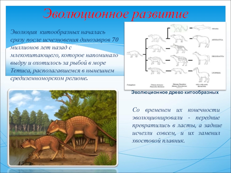 Со временем их конечности эволюционировали - передние превратились в ласты, а задние исчезли совсем, и их заменил хвостовой плавник.