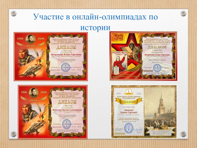 Слайд 15Участие в онлайн-олимпиадах по истории