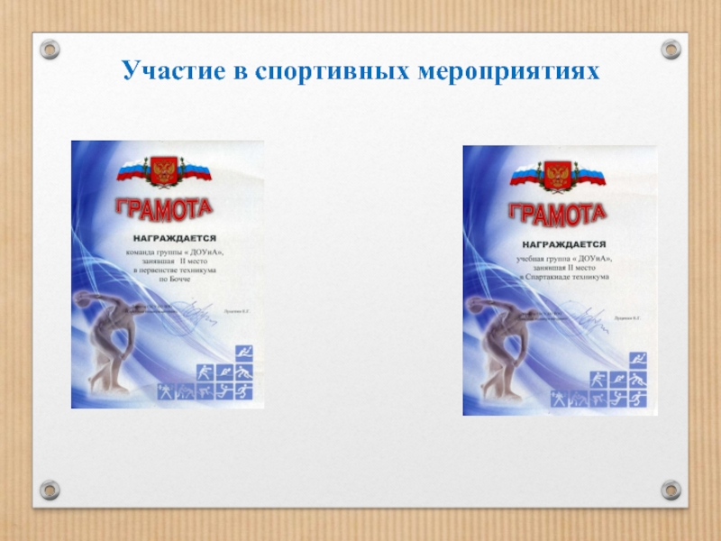 Слайд 18Участие в спортивных мероприятиях