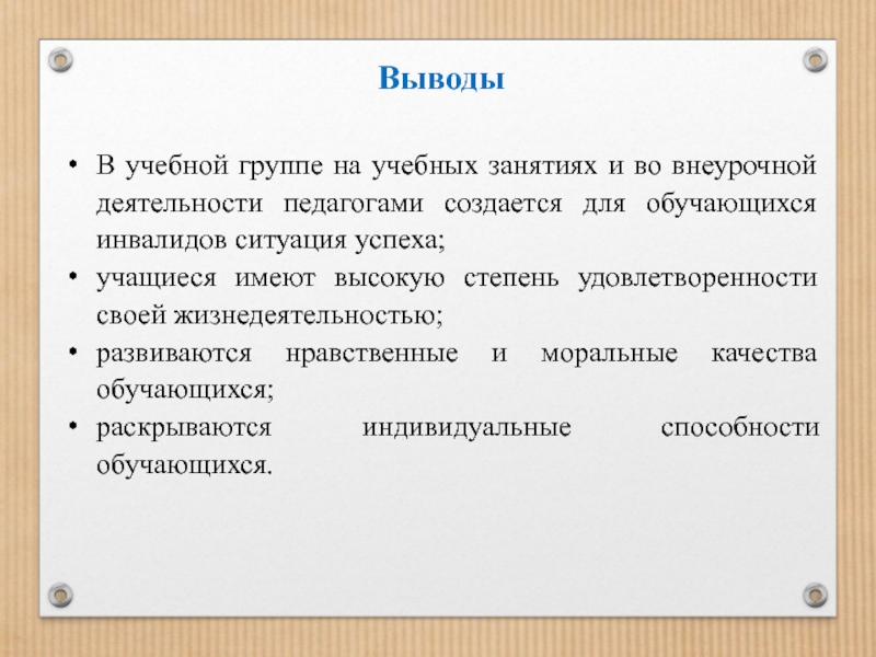 5. В итоге обучающиеся инвалиды будут активно участвовать в жизни социума и ощущать себя полноценными членами общества.
