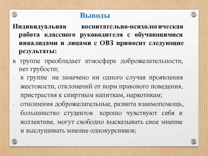 Индивидуальная воспитательно-психологическая работа классного руководителя с обучающимися инвалидами и лицами с