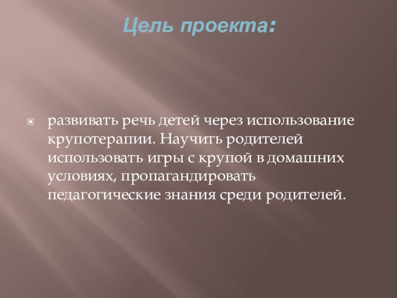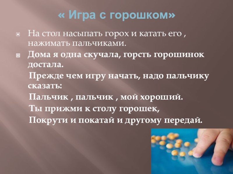 развивать речь детей через использование крупотерапии. Научить родителей использовать игры