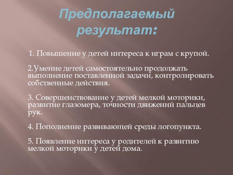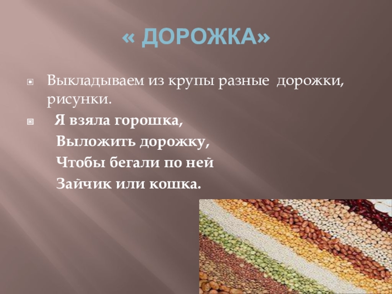 с крупой в домашних условиях, пропагандировать педагогические знания среди родителей.