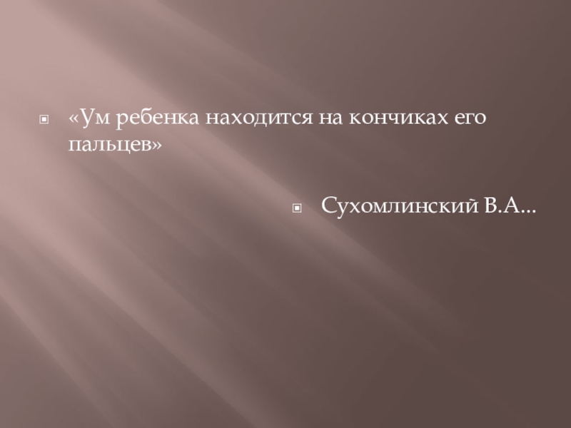 Слайд 2«Ум ребенка находится на кончиках его пальцев»