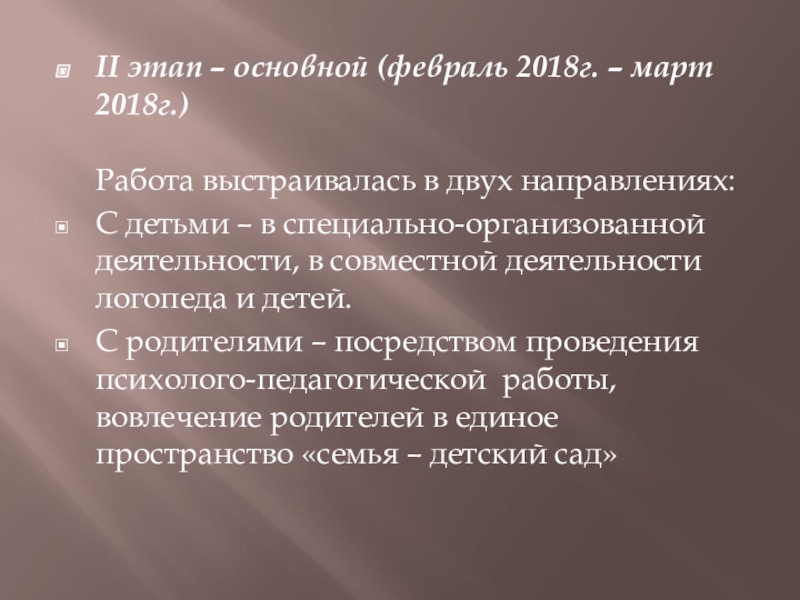 Слайд 10II этап – основной (февраль 2018г. – март 2018г.)