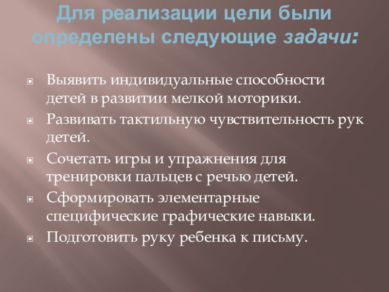 Разработка системы работы по развитию мелкой моторики рук у детей с речевыми нарушениями.