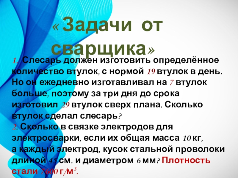 1. Слесарь должен изготовить определённое количество втулок, с нормой 19
