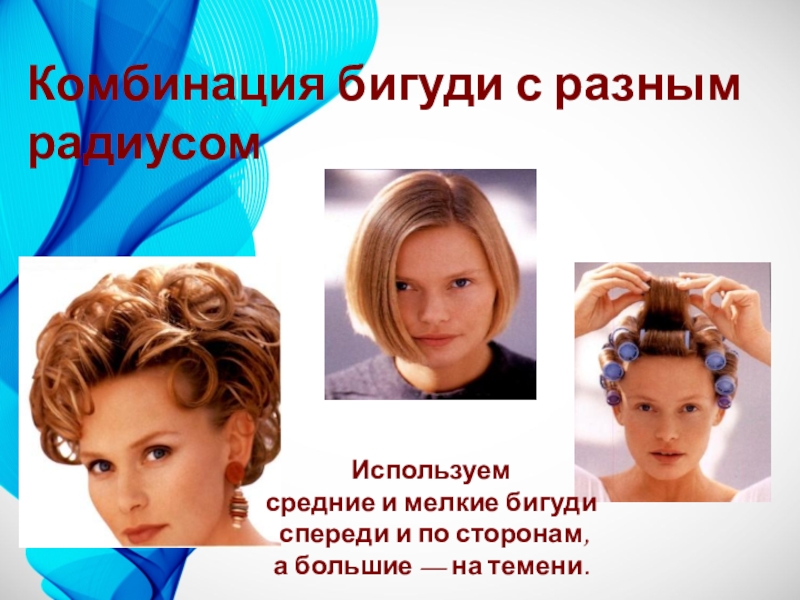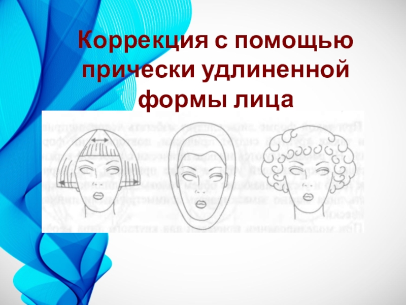 Слайд 48Коррекция с помощью прически удлиненной формы лица