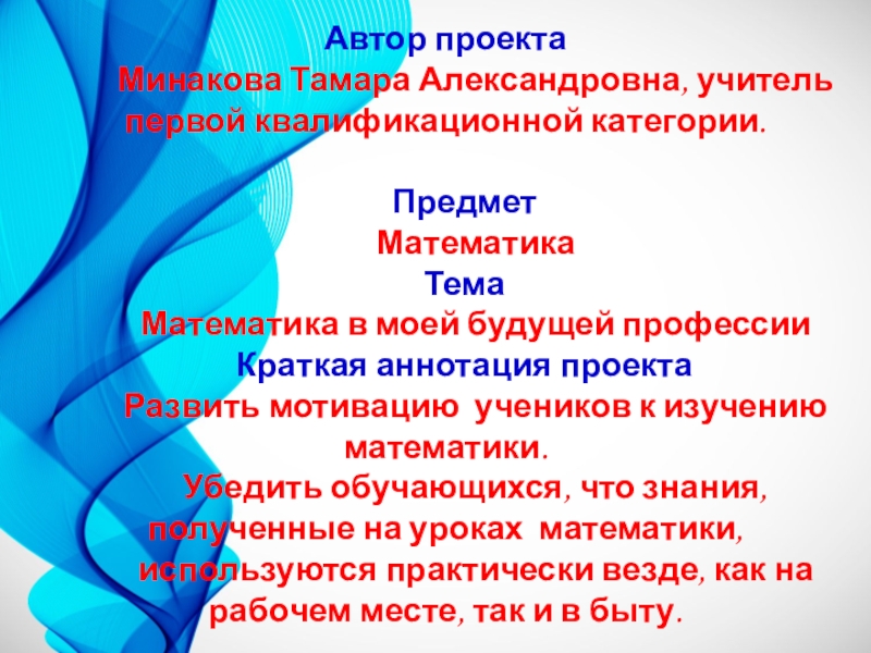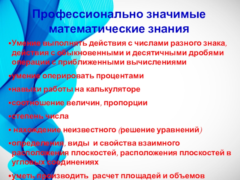 востребованным специалистом в своем деле невозможно без определенных знаний из других наук, знания математической символики, умения применения математических методов …