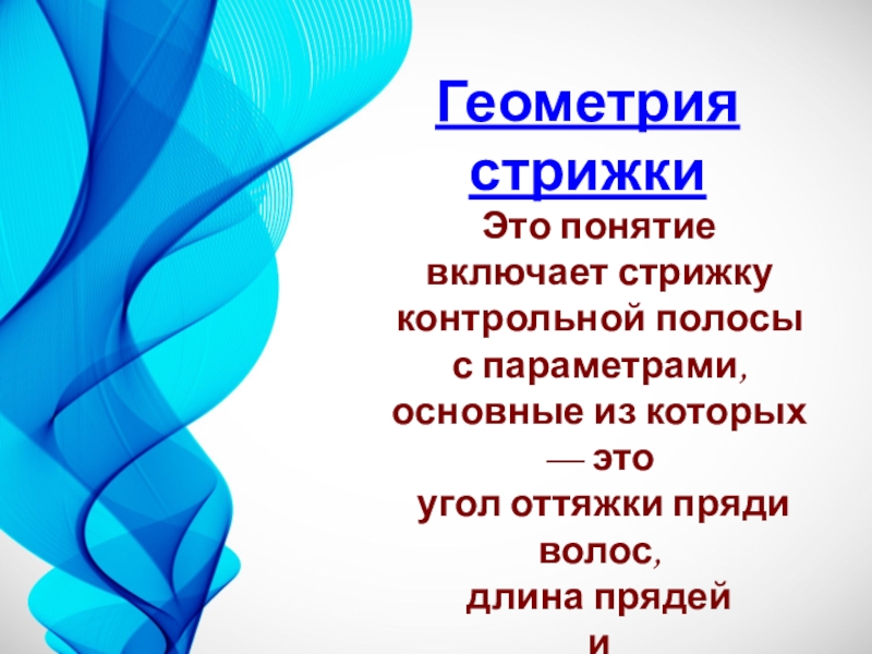 Слайд 41Это понятие включает стрижку контрольной полосы с параметрами, основные из которых