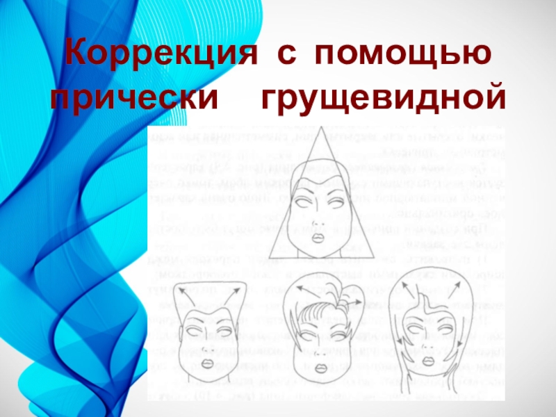 Слайд 45Коррекция с помощью прически грущевидной формы лица