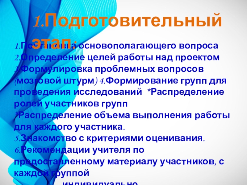 6.Работа учеников по поиску материалов к проекту, обработка информации