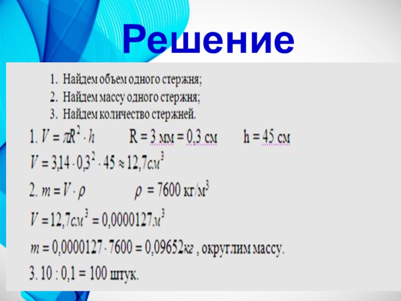 а каждый электрод, кусок стальной проволоки длиной 45 см. и диаметром 6 мм? Плотность стали 7600 г/м3.