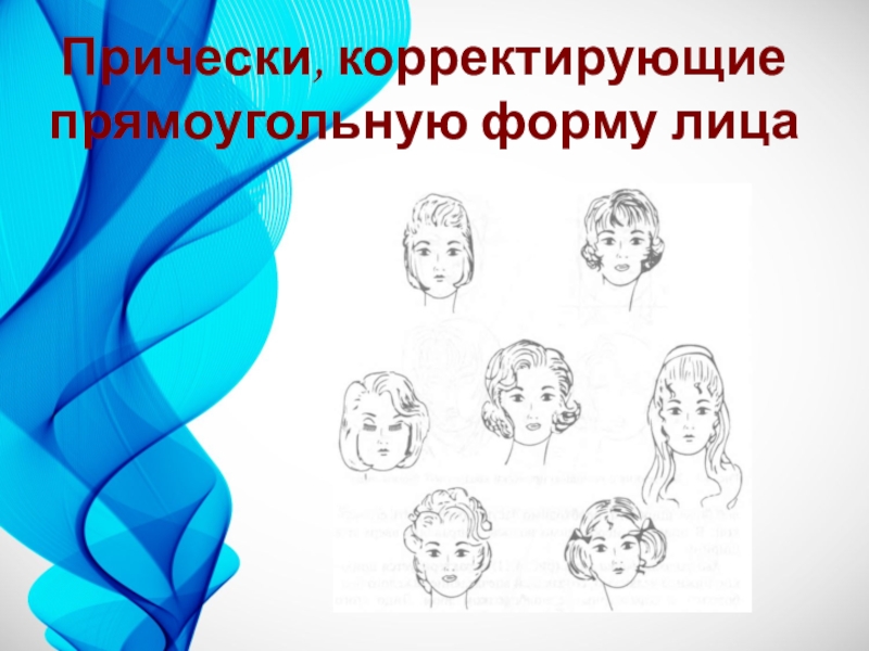Слайд 47Прически, корректирующие прямоугольную форму лица