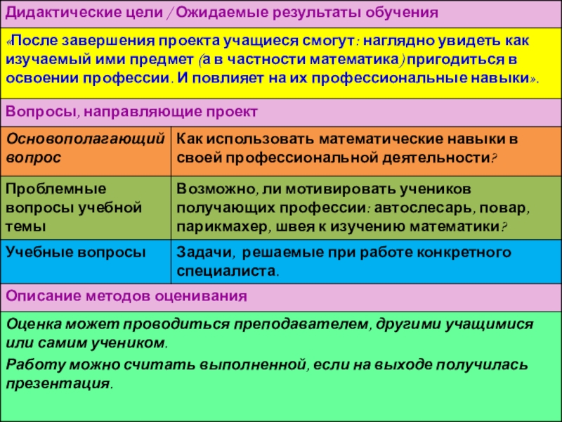 исследования: выявить необходимость получения математических знаний и применения их для решения производственных задач.