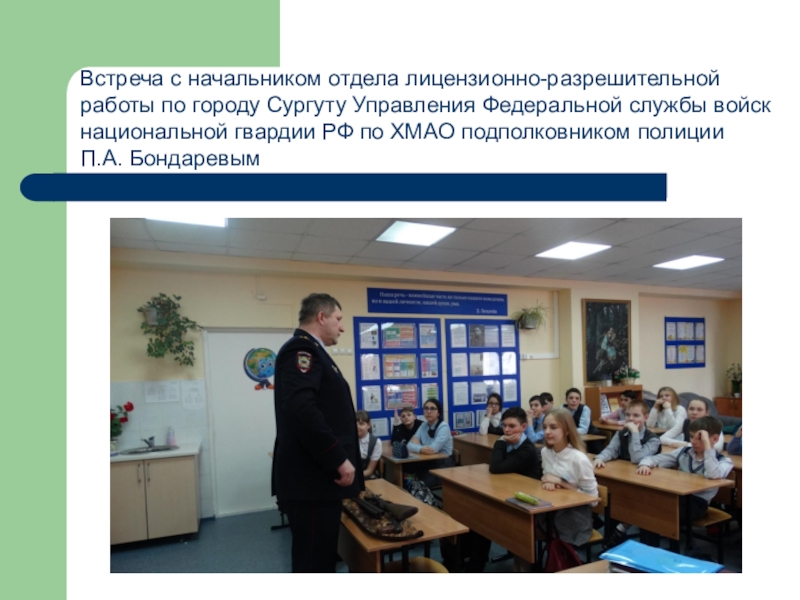 Слайд 39Встреча с начальником отдела лицензионно-разрешительной работы по городу Сургуту Управления Федеральной