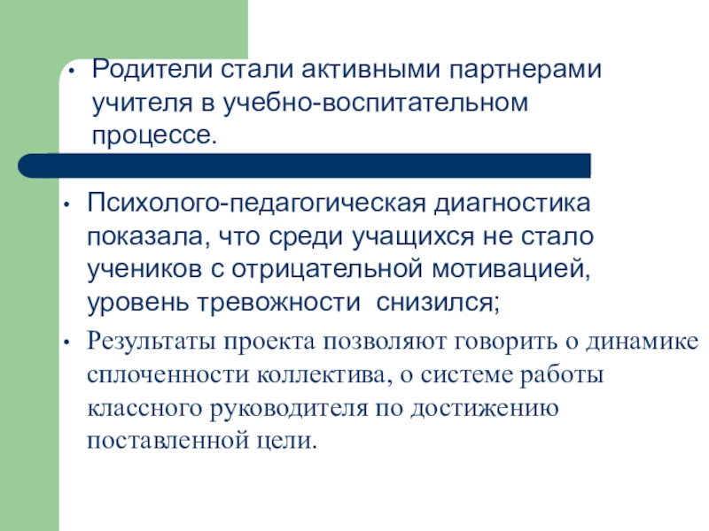 Слайд 44Психолого-педагогическая диагностика показала, что среди учащихся не стало учеников с отрицательной