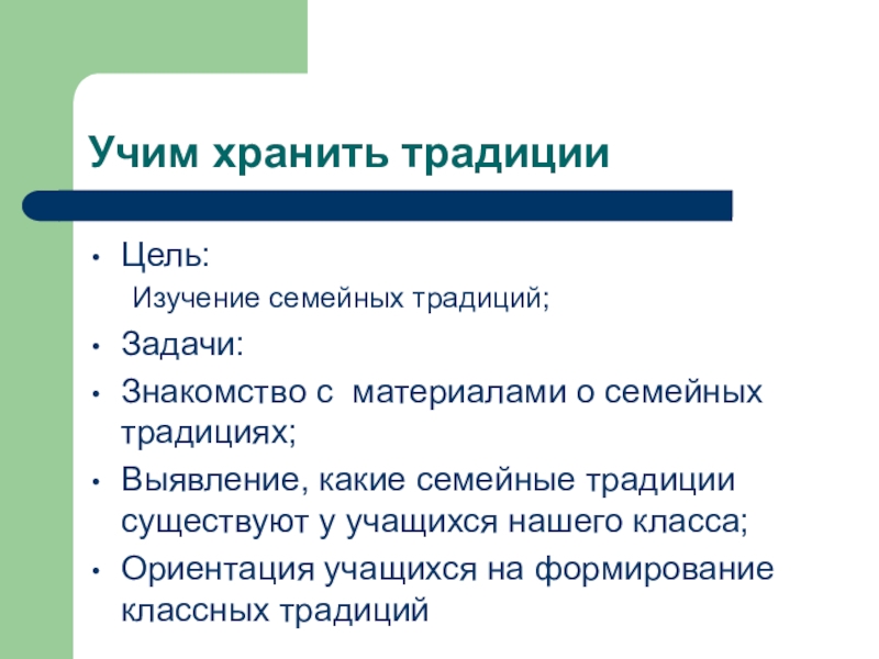 Выявление, какие семейные традиции существуют у учащихся нашего класса;