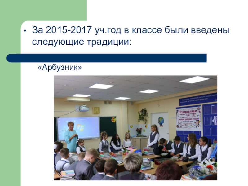 Слайд 13За 2015-2017 уч.год в классе были введены следующие традиции: