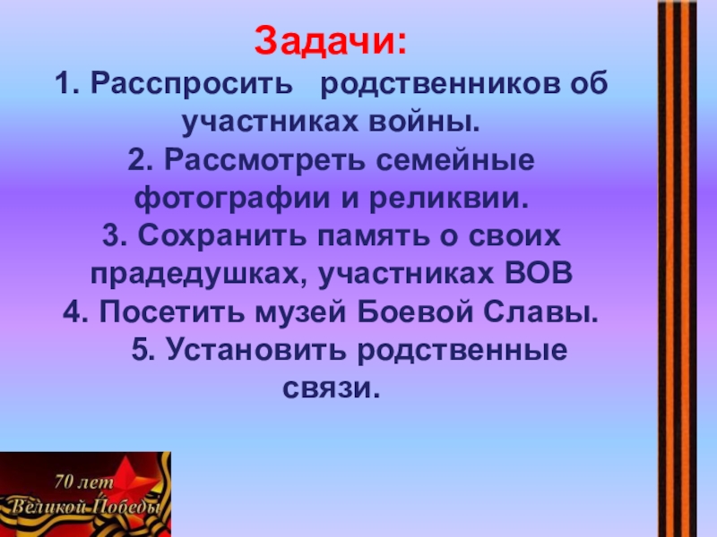 Это сайт презентаций, где можно хранить и обмениваться своими презентациями, докладами, проектами, шаблонами в формате PowerPoint с другими пользователями. Мы помогаем школьникам, студентам, учителям, преподавателям хранить и обмениваться учебными материалами.