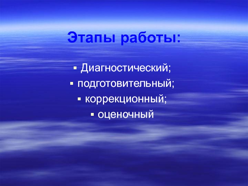 Этапы работы:Диагностический;подготовительный;коррекционный;оценочный