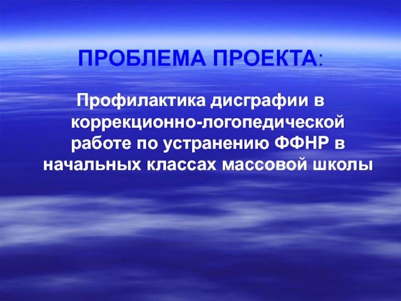 ПРОБЛЕМА ПРОЕКТА:Профилактика дисграфии в коррекционно-логопедической работе по устранению ФФНР в начальных классах массовой школы